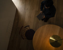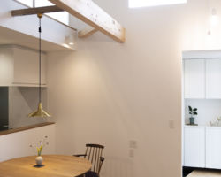 その結果、隣家側の南面にはあえて開口を設けず、日射は南東から吹抜けを介して室内全体へと広がる案を考えた。