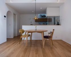 LDKのパブリックな空間からプライベートな空間への移動の動線をアーチで結ぶことで、心理的な移り変わりなどにも配慮した。
