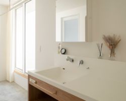 ダイニングとつながる奥のスペースには広い洗面脱衣室と家族全員分のW.Iクローゼットを配し、家事動線をより簡易なものとした。