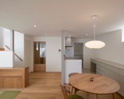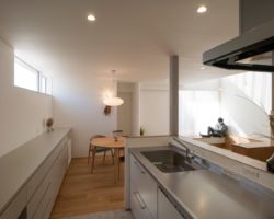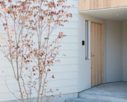 道路を挟んで向かいには母家があり、そこに暮らす親世帯との程よい距離感を保ちながら、ゆったりと暮らせる住宅の計画である。
