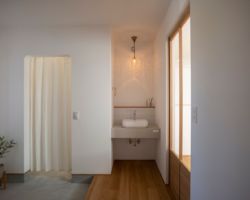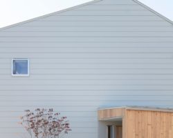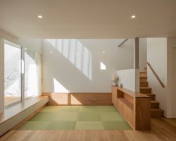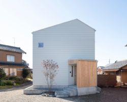 所在地 : 阿賀野市 用途地域 : 第一種住居専用 防火指定 : 無し 構造 : 木造軸組金物工法(耐震等級2) 階数 : 地上2階 最高高さ : 7.420M 最高軒高 : 5.861M 前面道路 : 2.0M(東側)※道路中心線から2mのセットバック有り 敷地面積 : 220.92㎡ 建築面積 : 68.01㎡ 延床面積 : 109.32㎡(1F:63.76㎡ / 2F:45.56㎡) 竣工 : 2022年10月20日 Photo : 星野 裕也