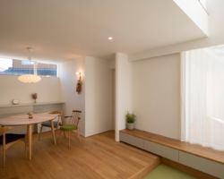 周りから少し掘り下げた落ち着いた空間とした。