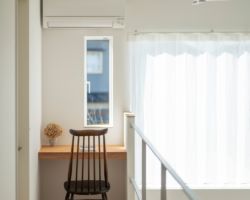 2Fには各個室のほか、たっぷりの納戸を設け家族の布団や、これから増えていく家族の思い出の品々を収納できる納戸を計画した。